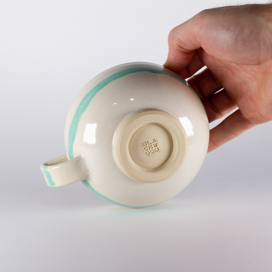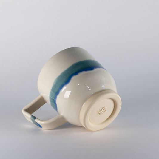 • Standard Mug | Thicker Handle, White with Mint Stripe