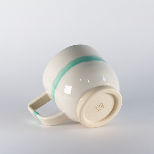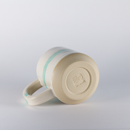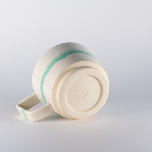 Standard Mug | Thicker Handle, White with Mint Stripe