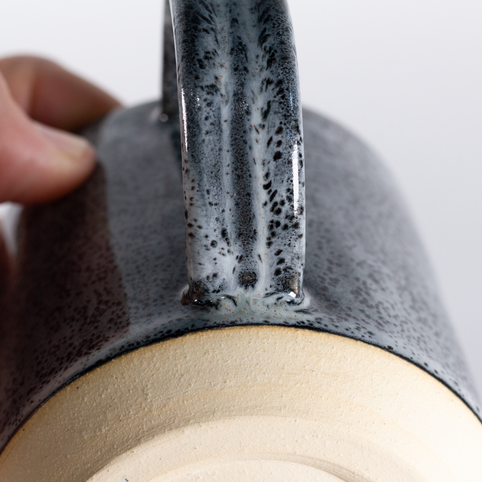 This single, Northwoods Mug was hand-thrown on the wheel in my shop. It is made with white stoneware clay and finished in a glossy charcoal glaze.